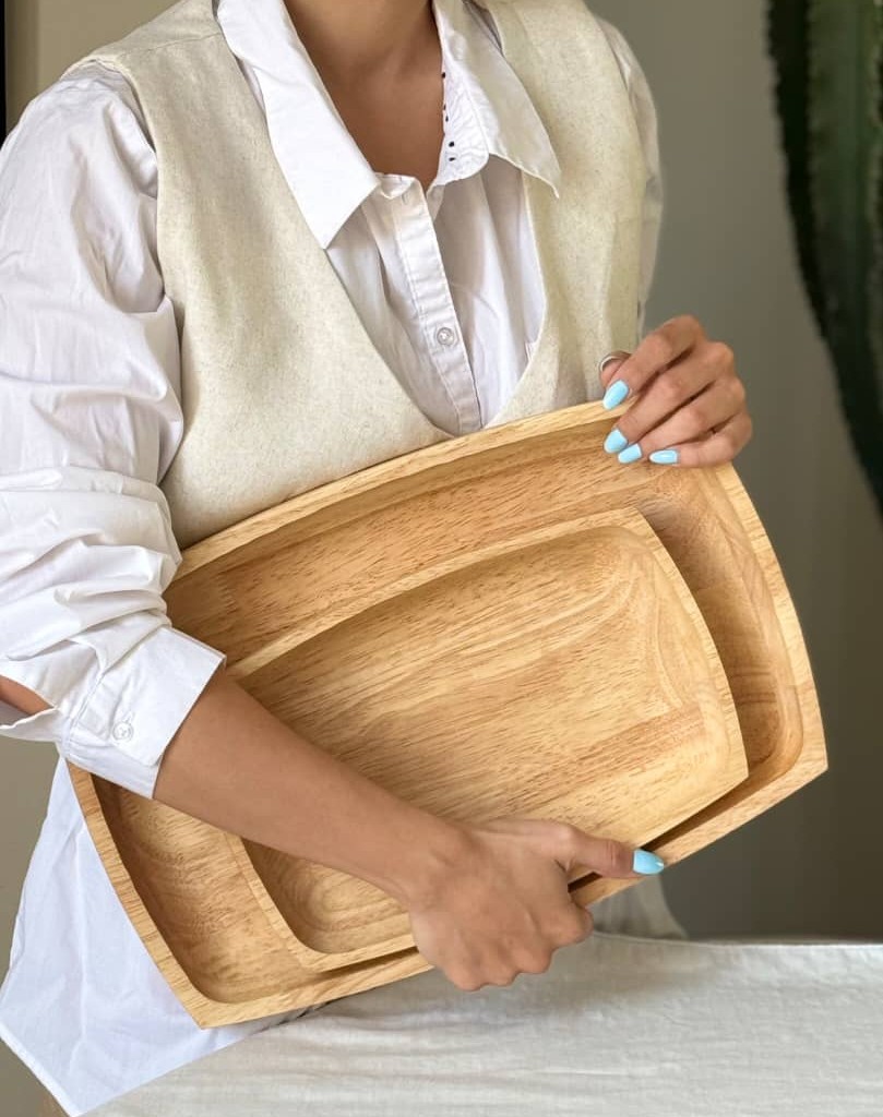 دیس گود مستطیل رابروود بزرگ یک ظرف پذیرایی با طراحی مدرن و ساده است که از چوب طبیعی رابروود ساخته شده. این دیس بزرگ به دلیل ابعاد مناسب خود، برای سرو مقدار زیادی پیشغذا، میوهها، تنقلات، دسرها یا حتی غذاهای اصلی در مهمانیها، جلسات و مراسمها بسیار مناسب است. چوب رابروود به دلیل ویژگیهای منحصر به فردش، شامل مقاومت بالا و بافت طبیعی، از مواد اولیه باکیفیتی است که علاوه بر دوام زیاد، ظاهری شیک و زیبا به محصول میبخشد.