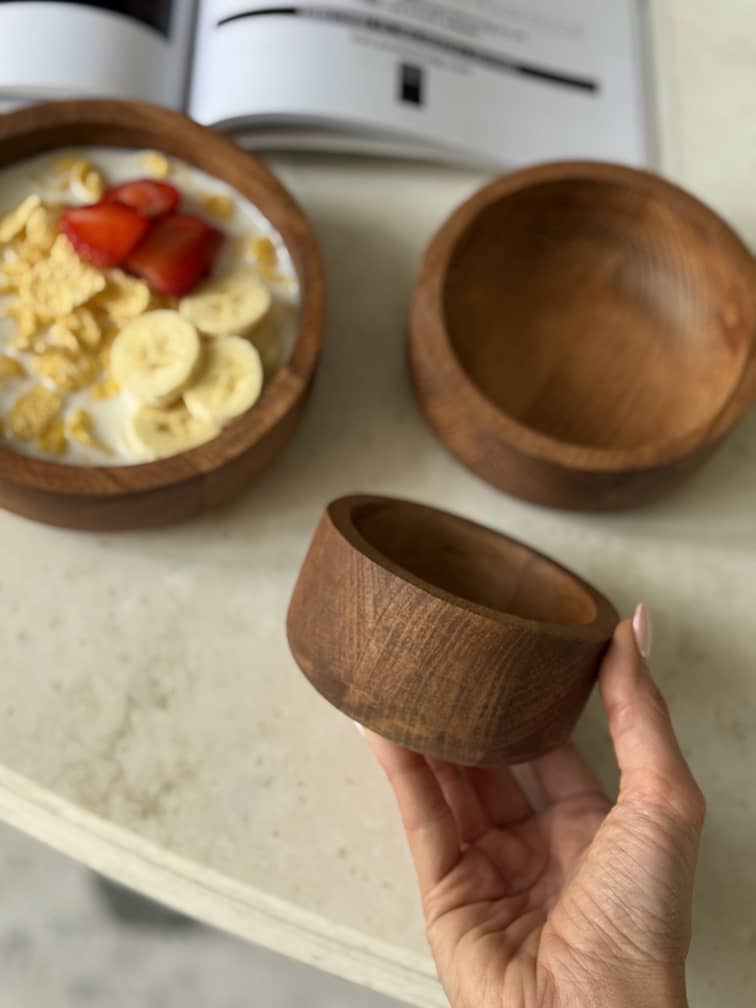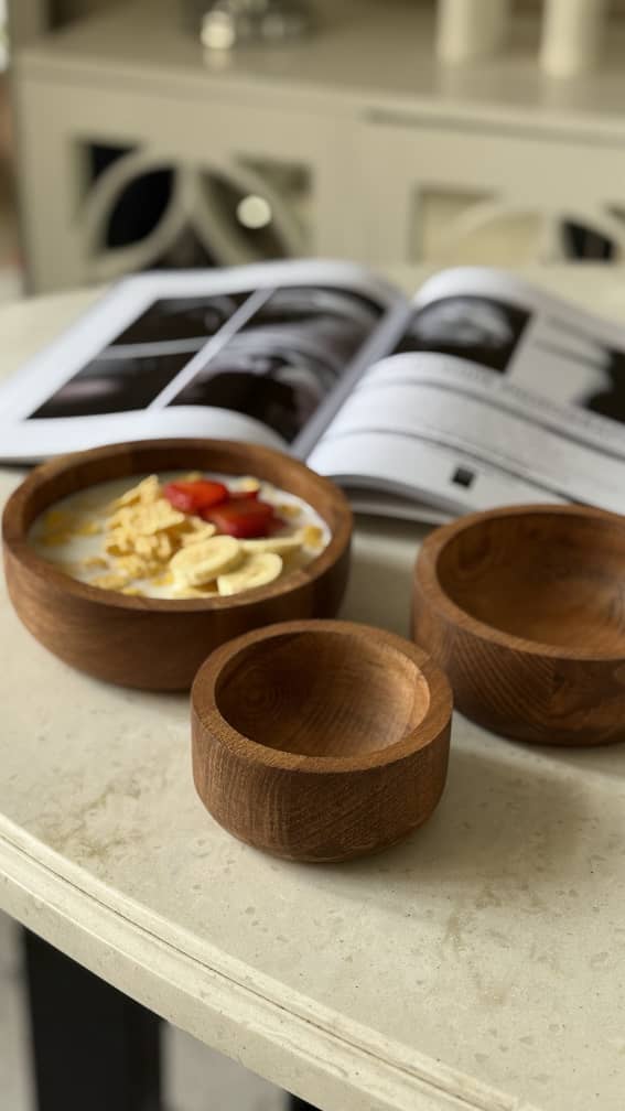 کاسه گرد مدل ژاپنی F با قطر ۱۳ سانت، کوچکترین عضو از سری گرد ژاپنی است که با طراحی ساده و مینیمال، زیبایی خاصی به میز پذیرایی میدهد. این کاسه از چوب گردو لوکس ساخته شده و با رگههای طبیعی و رنگ گرم خود، حس اصالت و طبیعی بودن را منتقل میکند.